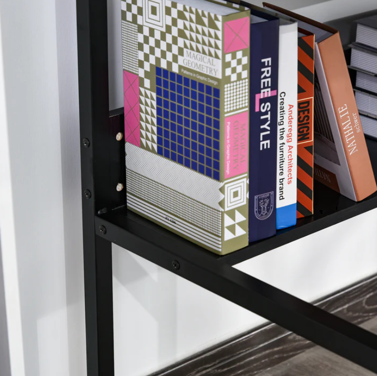 • SMALL DESK: The two-tier storage shelves of office desk are design height adjustment holes position, and  keeping your things organized and convenience usage