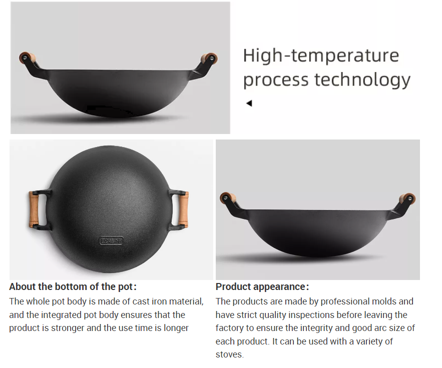• The pot body: is naturally uncoated and rustproof. The surface layer is treated with vegetable oil for high-temperature carbonization and rust prevention, which effectively inhibits oxidation and is not easy to rust.