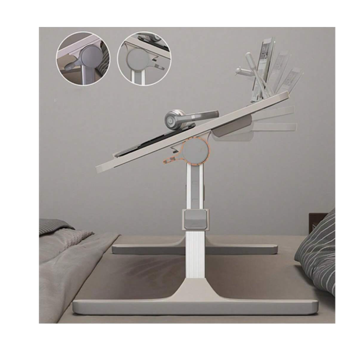 • STURDY AND DURABLE: The table on bed is crafted with top notch plastic material, featuring with great durability and wear resistance, stable and durable to use, withstanding daily use and wear. The table surface is with smooth texture, it has soft notches given on one side of flat-top to prevent things from rolling down when tilted, giving the table unique appearance and functionality.