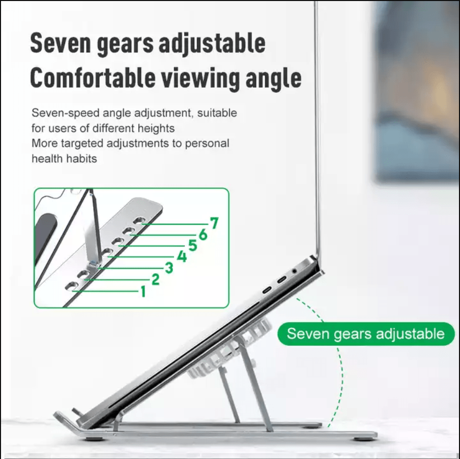 Purpose: It can hold laptops, IPAD, and other tablet computers. Even the largest tablet computers can be easily placed on this stand. It has 7 gears, which can be used by snapping the button at will. It can adjust the perspective of a laptop or IPAD naturally