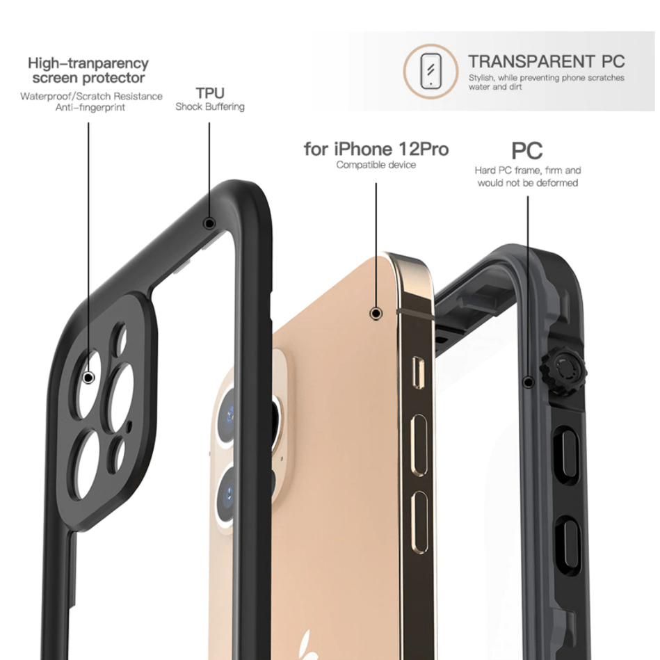 - WATERPROOF: The iPhone 12 Pro Case Waterproof of a depth of up to 2 meters more than 3 hours, take photos, send a message etc. when you are enjoying your water activities on the go.