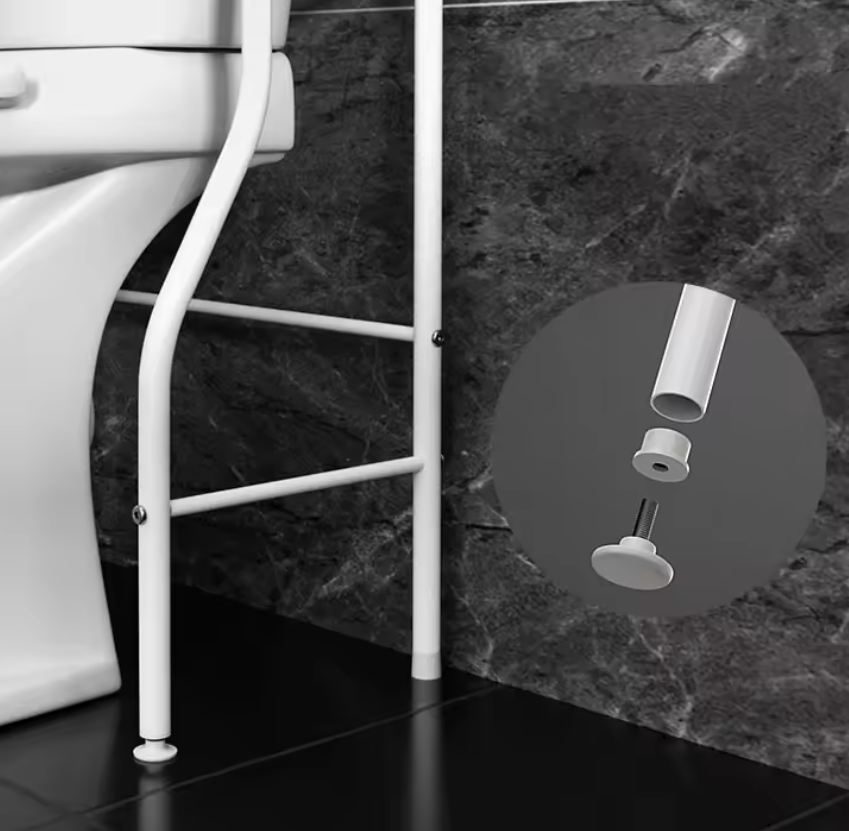 • EASY TO USE: Below the bathroom shelving are adjustable screws. When the floor is not flat, you can adjust the height of the screws to stabilize the toilet storage without shaking.