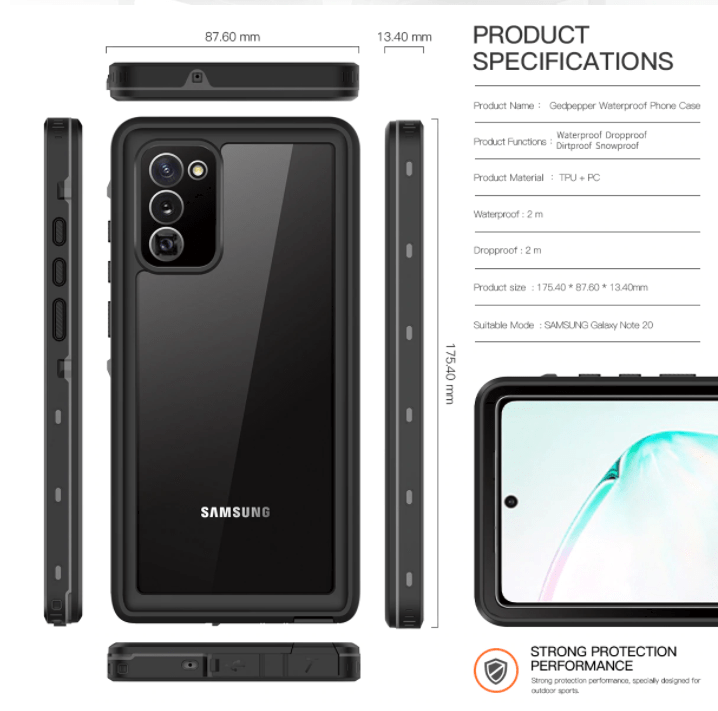 WATERPROOF: The Samsung Galaxy Note 20 Ultra Case Waterproof of a depth of up to 2 meters more than 3 hours, take photos, send a message etc when you are enjoying your water activities on the go.