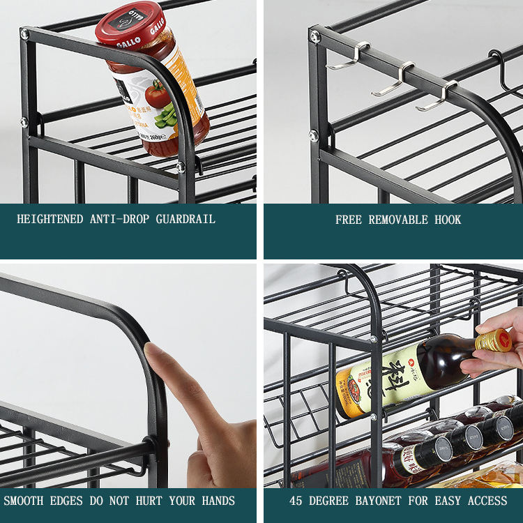 Kitchen Spice Organizer rack Stainless Steel Black 3 Tier Easy to pick Storage Rack bottle holder