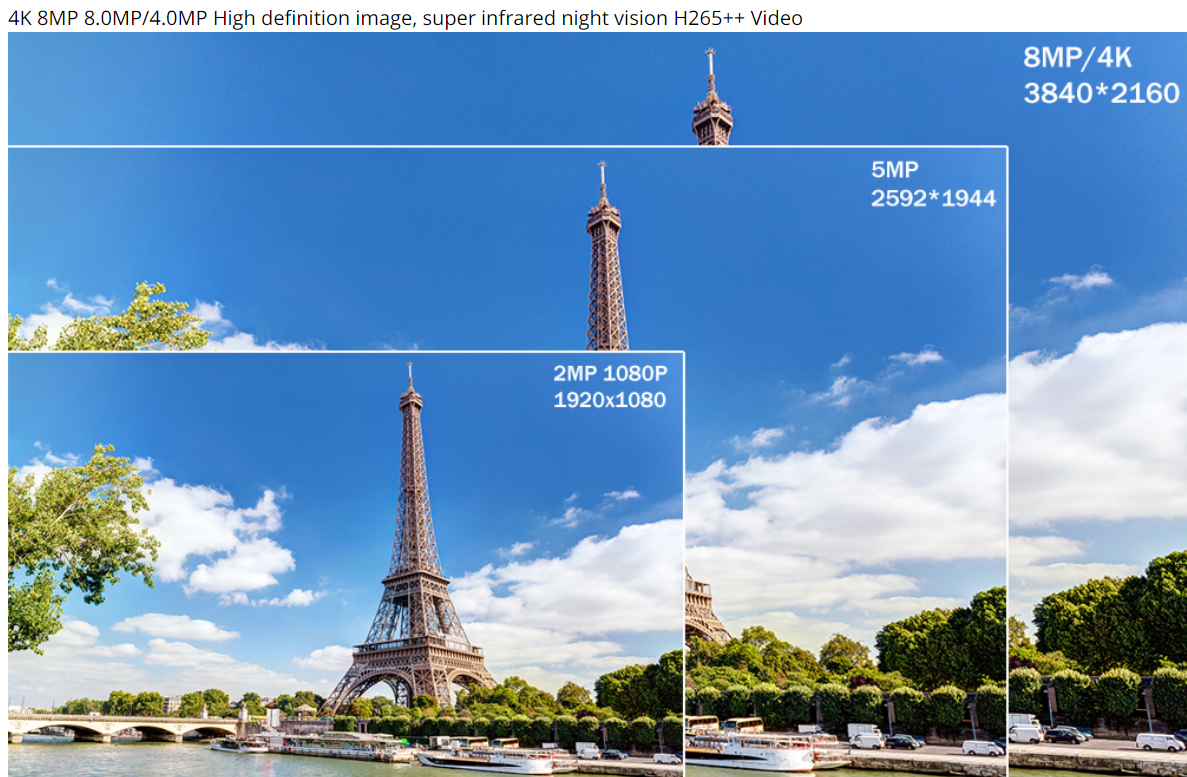 4K 8MP 8.0MP/4.0MP High definition image, super infrared night vision H265++ Video