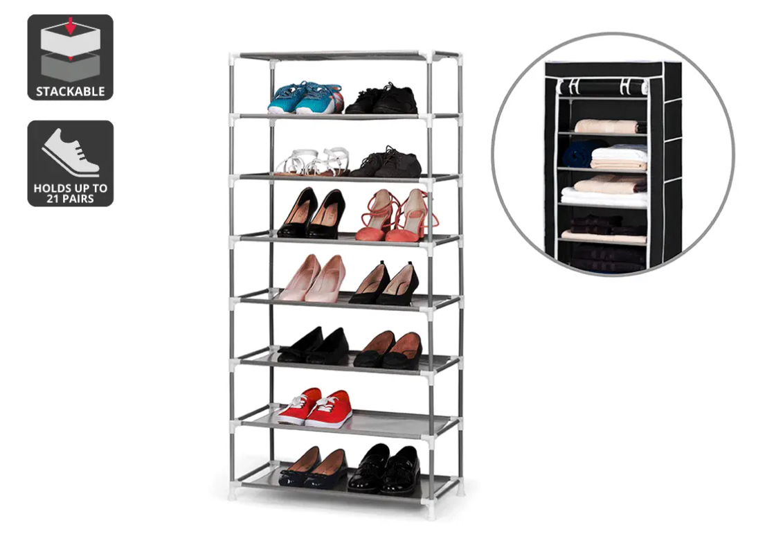 8 Tiers Fabric Shoe Rack and Storage Wardrobe (Black) – Snap Deal Dealer