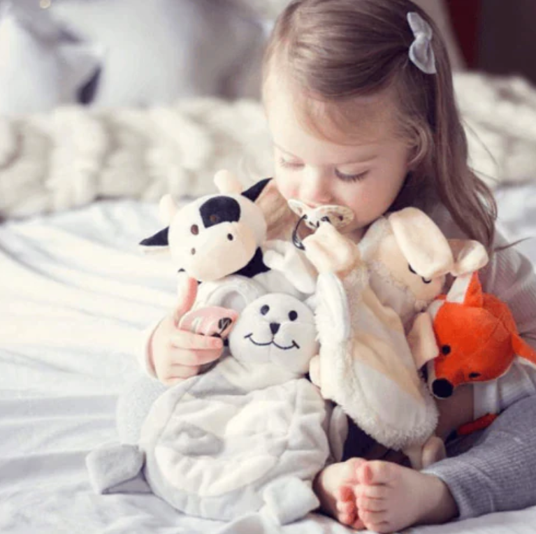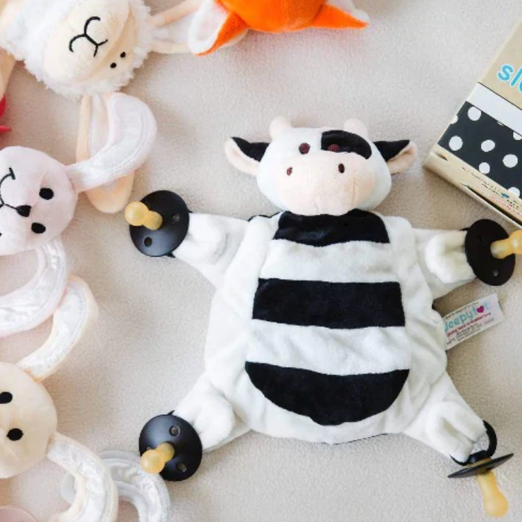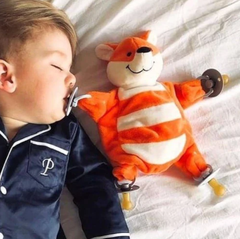 The award winning baby comforters have little velcro paws which hold up to 4 dummies, soothers or teethers. The Millpond Child Sleep Clinic and sleep consultants worldwide recommend our comforters as a way of helping little ones find their dummies easily at night and return to sleep without fully waking.