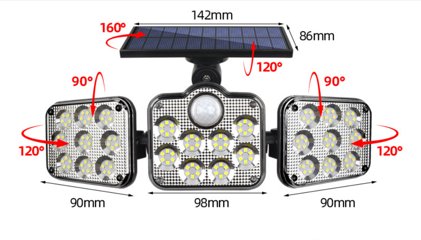 • 【SUPER BRIGHT LED LIGHTS】The solar outdoor light is equipped with 56 high-brightness LED lamp beads, which can produce high brightness output up to 6500k and good heat dissipation effect, illuminating your courtyard and garden.
