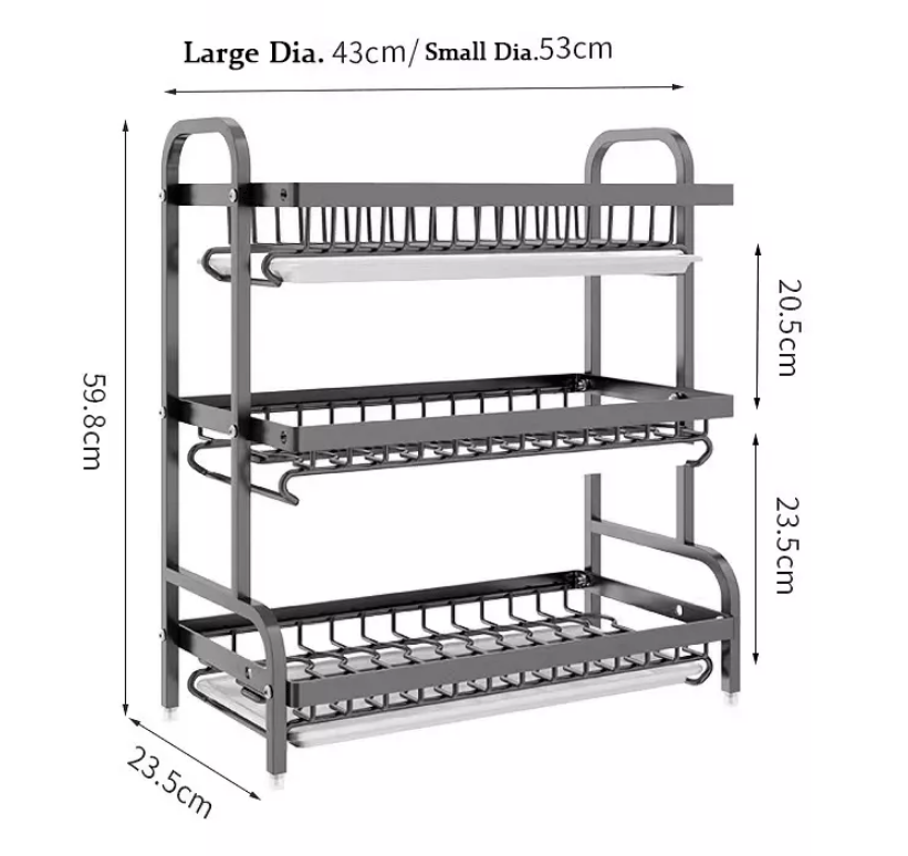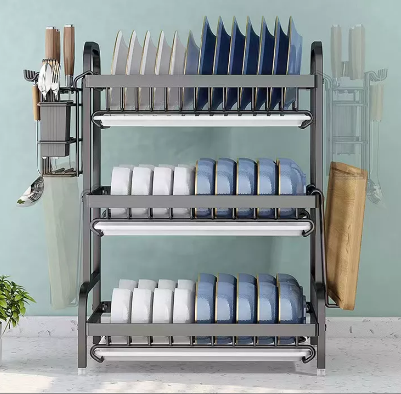 - 3 TIER DISH RACK for SPACE SAVING - The compact dish drying rack includes 1 dish rack, 1 Utensil Holder, 1 knife and cutlery holder, 1 cutting board holder, and 2 Removable Drain Board. All the parts can be dissembled and washable and dishwasher friendly so you can clean and sanitize them occasionally. It’s designed to save space in your cooking and cleaning area. A must-have for any kitchen which accompany your needs during hand washing your dishes and drinkware.