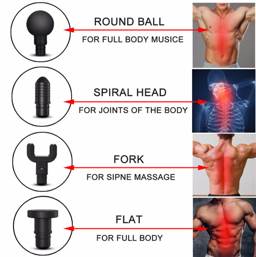 • Tapping the massage gun provides 4 customized massage heads, which can more accurately locate different body parts and muscle groups, provide a relaxing massage experience and reduce bone damage, the best massage effect