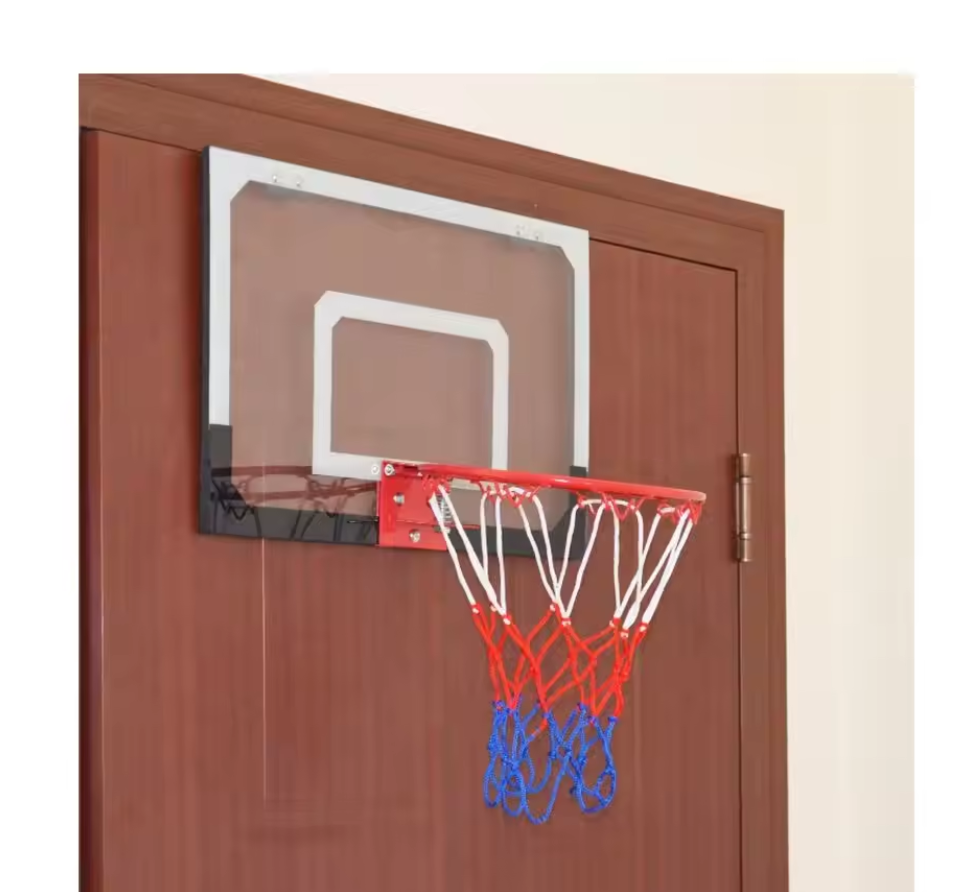 The Door-Mounted Mini Basketball Hoop Set for Basketball Fans: The basketball set comes with a rubber basketball, a steel rim, a ball net, a backboard, an air pump and a complete mounting hardware set like the wrench, hoops, screws and screwdriver. Keep children active indoors and away from the electronics with a funny and exciting basketball game.