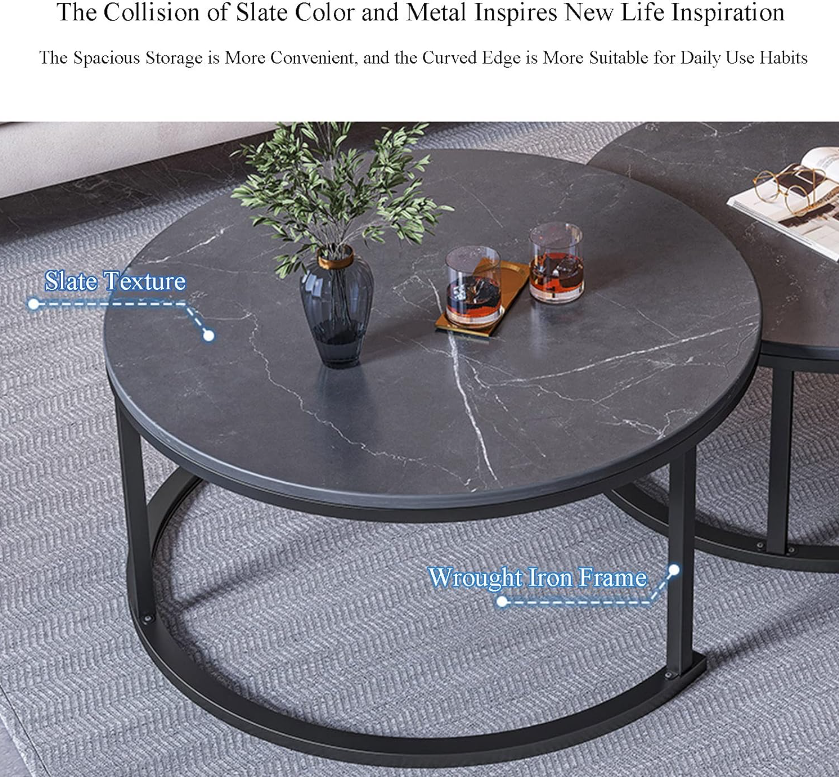 2) Coffee table sets, two tables meet your different needs. The open base design gives you more space.