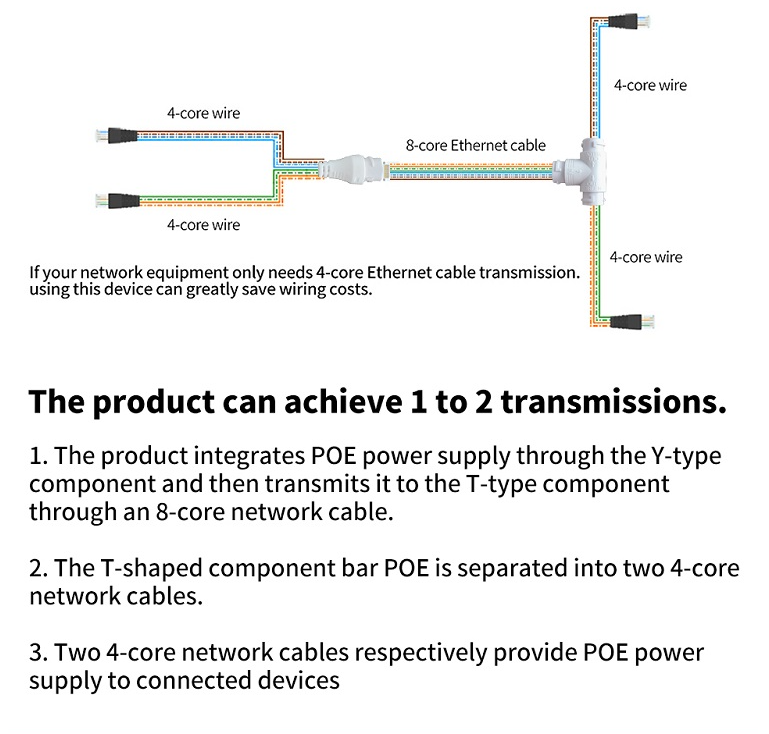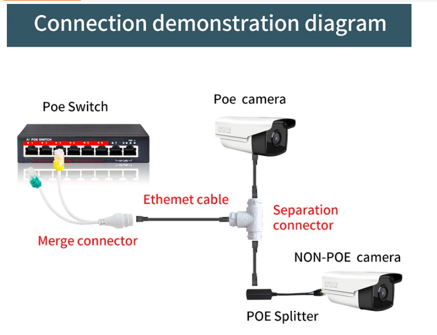 POE Splitter Adapter 1 to 2, 48V Active POE thernet poe Splitter Connector Adapter,Compatible with Cat5 ,Cat5e, Cat6, Cat7