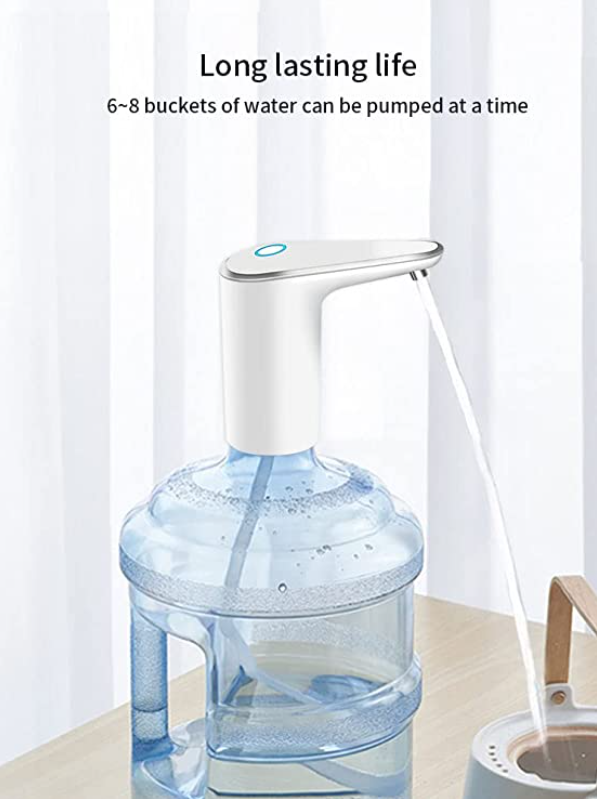 - ABOUT BATTERY This water dispensing pump has built-in rechargeable 1200mAh lithium battery. Once full charged can used for 5-6 bottles of 20L water bottle, no need to charge every day. It can be taken along anywhere for water dispensing.