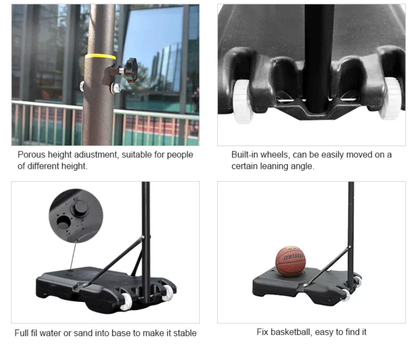 - HIGH-STRENGTH BASE & STABLE CONSTRUCTION: The solid base of our basketball goal system can be filled with water or sand to ensure good stability and safety for every shot. The triangular structure formed by the pole and the base provides stability during play and prevents the basketball hoop from tipping over.