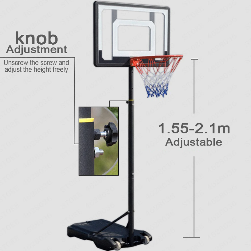 - EASY INSTALLATION & OPERATION: The portable basketball hoop is super easy to put together with labeled parts and clear simple instructions easy to follow. It's easy to adjust to different heights with simple twists of knobs and easy to move around with wheels.