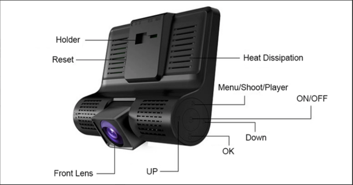 1.The low illumination high-definition video, there are three cameras, the front camera is Full HD 1080P, the rearview camera and the inside camera is 720P